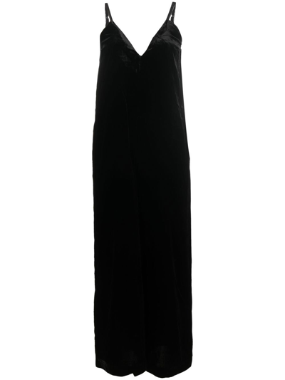 Miley Long Black Dress With Tonal Lace Trim In Silk Woman