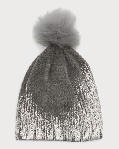Metallic Knit Toscana Lamb Pom Beanie In Gray