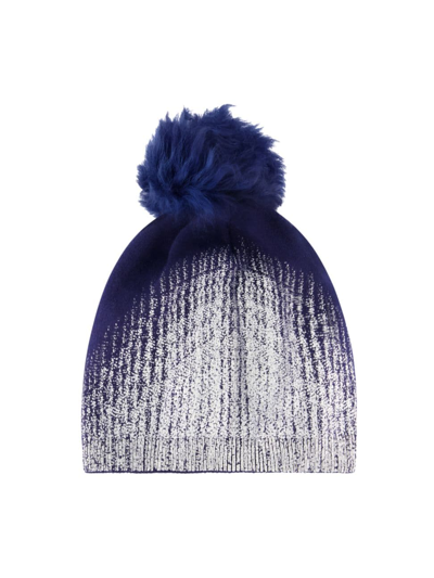 Metallic Knit Toscana Lamb Pom Beanie In Navy / Silver