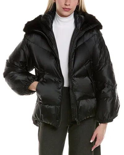 Short Down Apres-ski Jacket With Detachable Toscana Lamb Hood Trim In Black