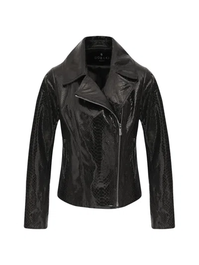 Women's Metis Suede Python Printed Moto Zip Jacket In Black