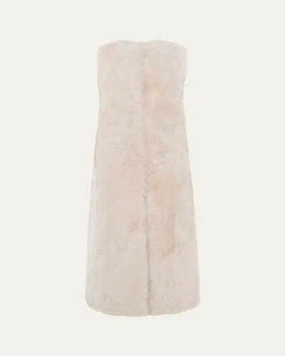 Select Cashmere Goat Fur Collarless Long Vest In Light Beige
