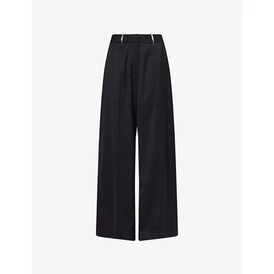 Womens Claw Belt-loop Straight-leg Wool Trousers Black