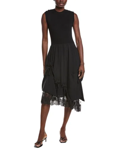 Knit Top Asymmetrical Lace Hem Midi Dress In Black