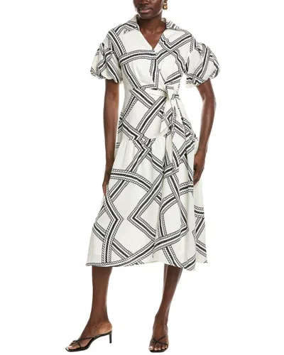 Banded Waist Linen-blend Midi Wrap Dress In Neutral