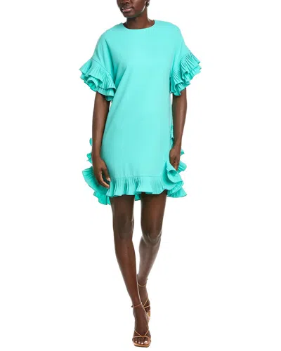 Pleated Puffed Sleeve A-line Shirtdress In Blue