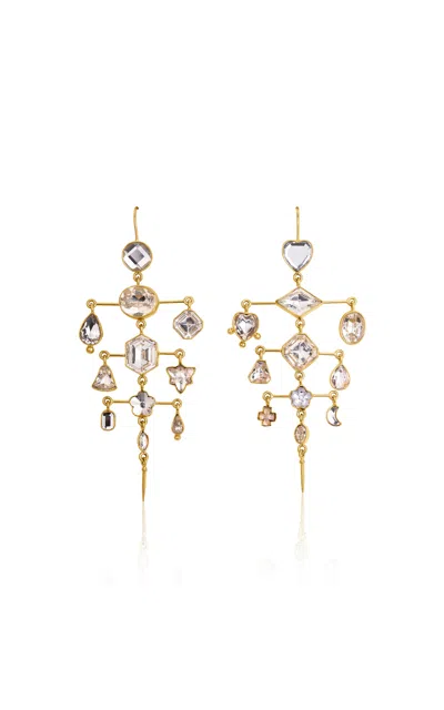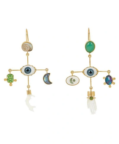 Gold-plated Eye Cross Asymmetric Multi-stone Drop Earrings In White