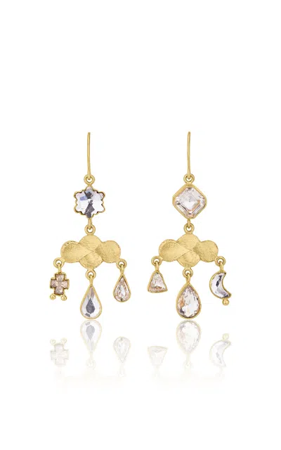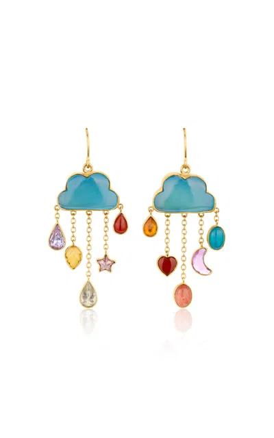18k Gold Plated Silver And Mixed Materials Cloud And Rain Chain Drop Earrings In Blue