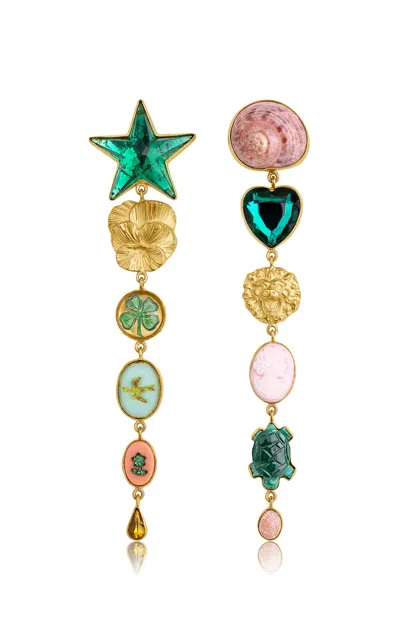 Gold-plated Asymmetric Multi-stone Five Charm Victorian Drop Earrings