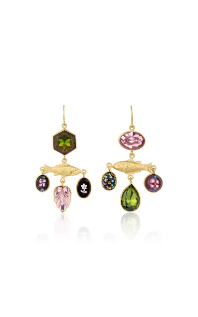 18ct Gold-plated Three Charm Moving Drop Earrings In Multi