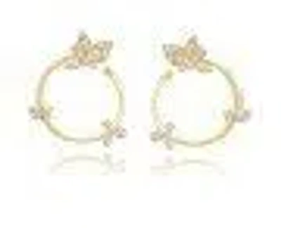 18k Yellow Gold Natura Diamond Bird Forward Facing Hoop Earrings