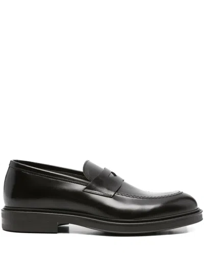 Loafers In Dark Brown Leather In Black