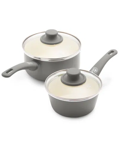 Soft Grip Healthy Ceramic Nonstick 1qt & 2qt Saucepan Set In Black