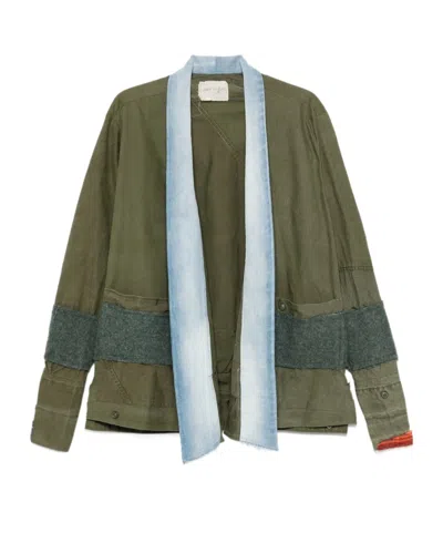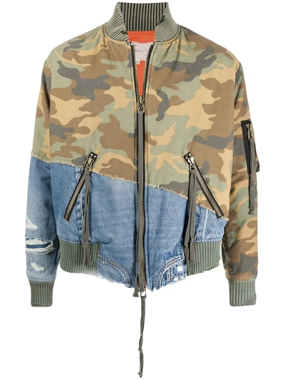 Camouflage Denim Contrast Jacket In Green