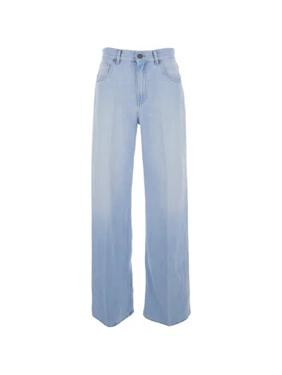 Faded-wash Wide-leg Jeans In Blue