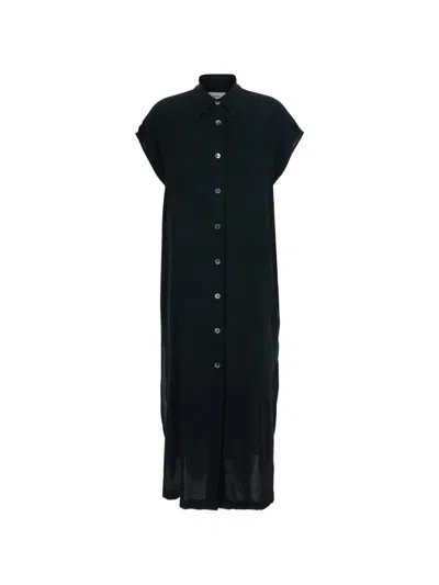 Short-sleeve Shirt Dress In Black
