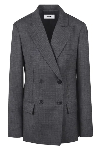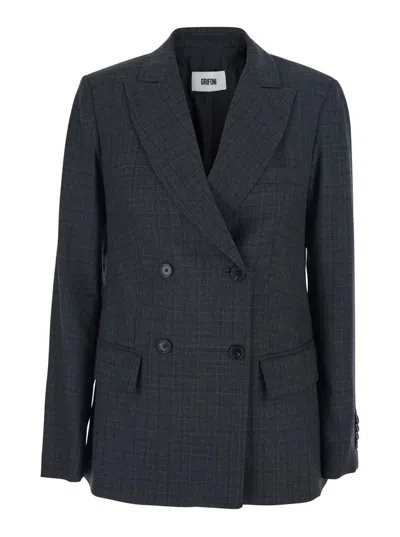 双排扣格纹西装夹克