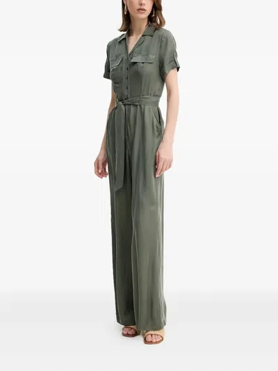 V领束腰连体长裤