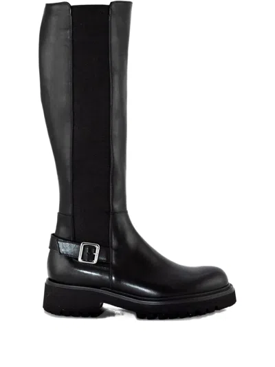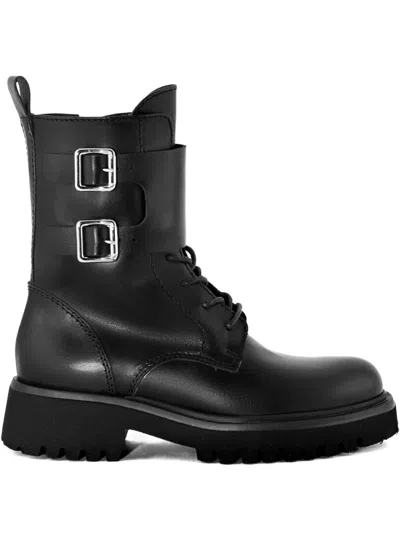 Black Leather Ankle Boot With Rubber Sole In Animal Print