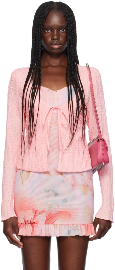 Red Crochet Ruffle Sleeve Bolero Cardigan