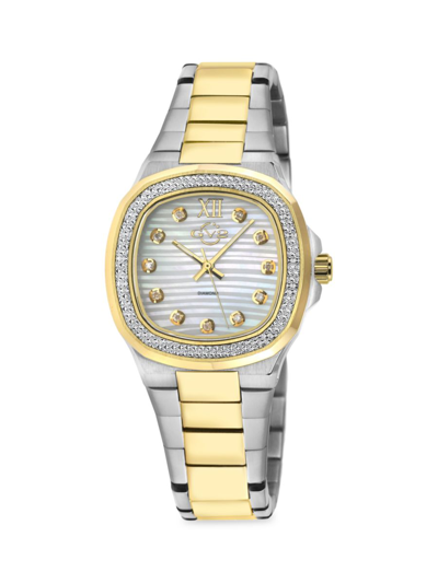 Women's Turin Diamond,white Mop Dial, Two Toned Ipyg Stainless Steel Watch In Silver