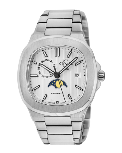 Men's Giromondo Silver Dial Brown Calfskin Leather Watch In White
