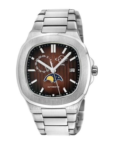 Men's Giromondo Silver Dial Brown Calfskin Leather Watch In White