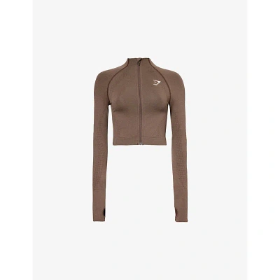 Womens Penny Brown Marl Vital Seamless 2.0 Stretch-jersey Zipped Jacket