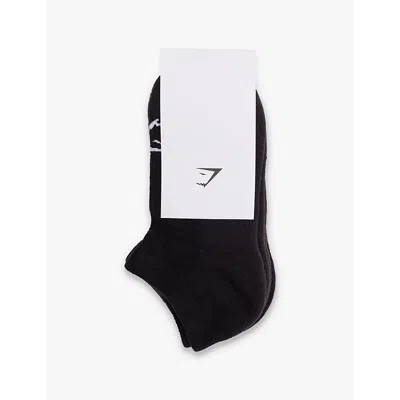 Womens Black Brand-pattern Pack-of-three Cotton-blend Knitted Trainer Socks