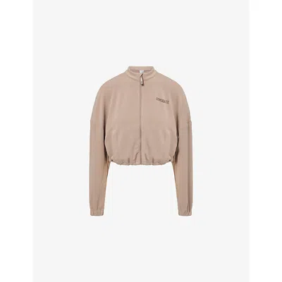 Womens Waffle Midi Zip-up Jersey Jacket In Brown