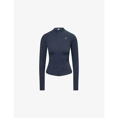 Womens Darkest Teal Running Full-zip Stretch-jersey Track Jacket In Blue
