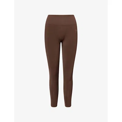 Womens Autumn Brown Soft Sculp Brand-print Yoga Leggings In Neutral
