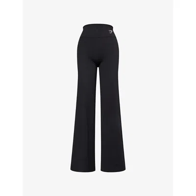 Womens Black Crossover Flared-leg Tall Stretch-woven Leggings
