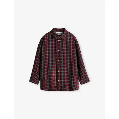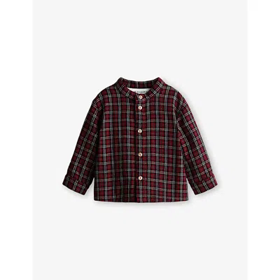 Kids' Checked Band-collar Cotton-muslin Shirt 4-36 In Red