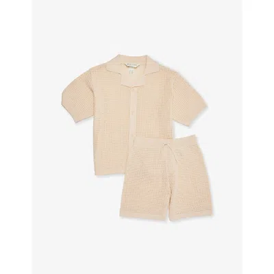 Kids' White Dusty Light Pointelle-knit Two-piece Cotton Set 2-10 In Neutral