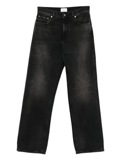 Washed Dark Grey Jeans With Classic Five-pocket Design In Black