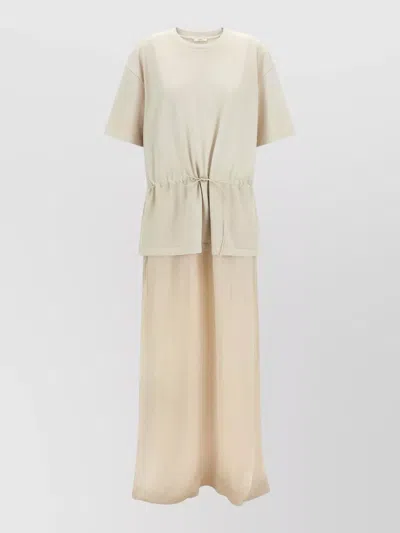 Joopy Drawstring Waist Mixed Media T-shirt Dress In Neutral