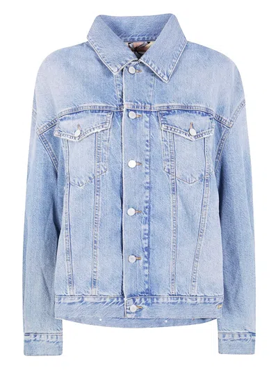 Button-down Long-sleeved Denim Jacket In Blue