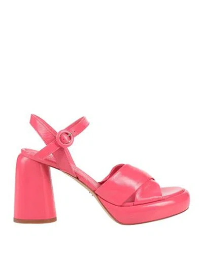 Woman Sandals Coral Size 8 Leather In Rosa Pastello