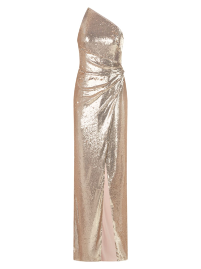 Adriana One-shoulder Sequin Gown In Champagne
