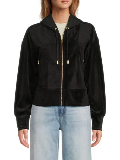 Women's Drop Shoulder Zip-up Hoodie In Black