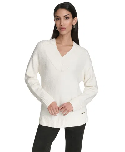 Women's Chunky Boucle Long Sleeves Sweater In White