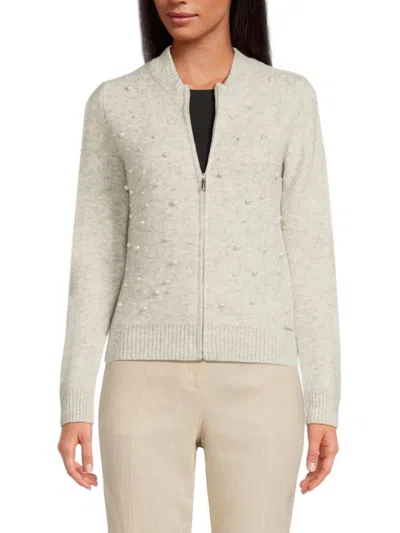 Women's Embellished Zip Sweater In Gray