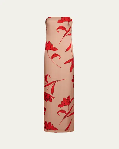 Manuela Strapless Floral-print Column Gown In Camel Statement Flow