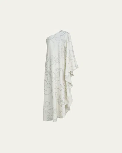 Nevean One-shoulder Foil Crepe Caftan In Inked Floral