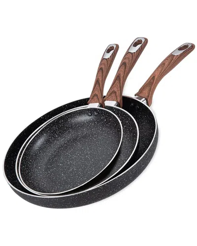 Set Of 3pc Alum Fry Pan Marble Coat In Black