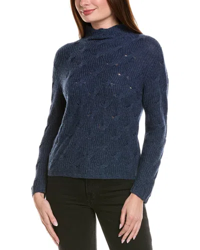 Shaker Cable Funnel Neck Wool & Cashmere-blend Sweater In Blue