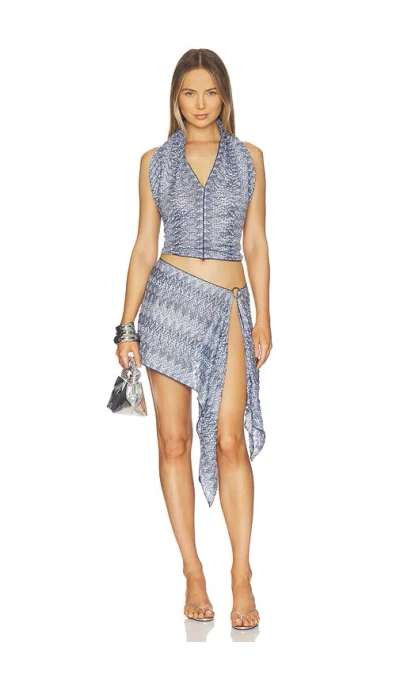 Knit Scarf Top And Skirt Set In Blue