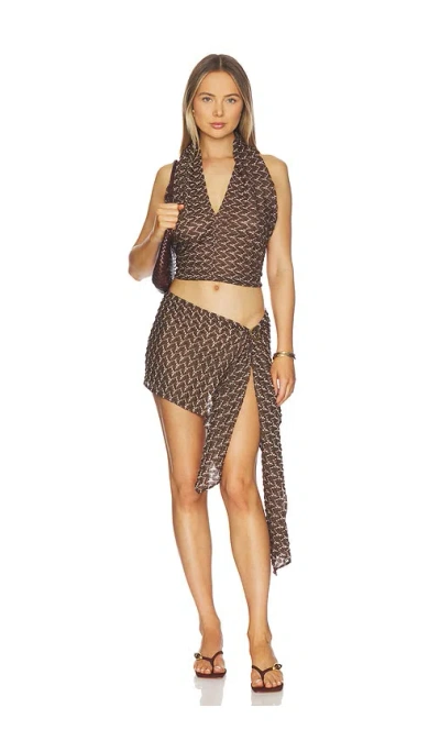 Knit Scarf Top And Skirt Set In Brown