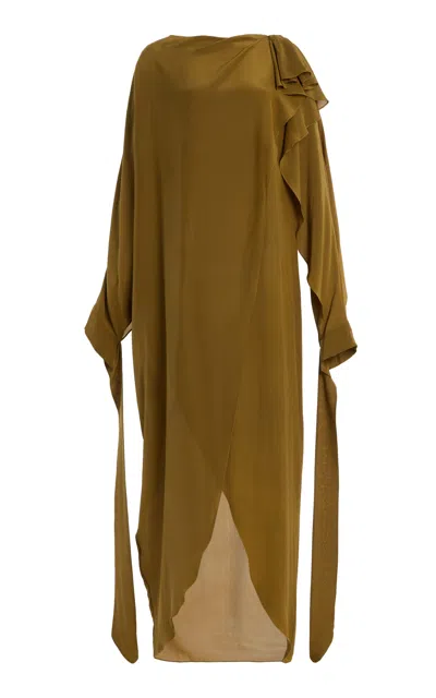 Steorra Flared-sleeve Polka-dot Silk Maxi Dress In Black